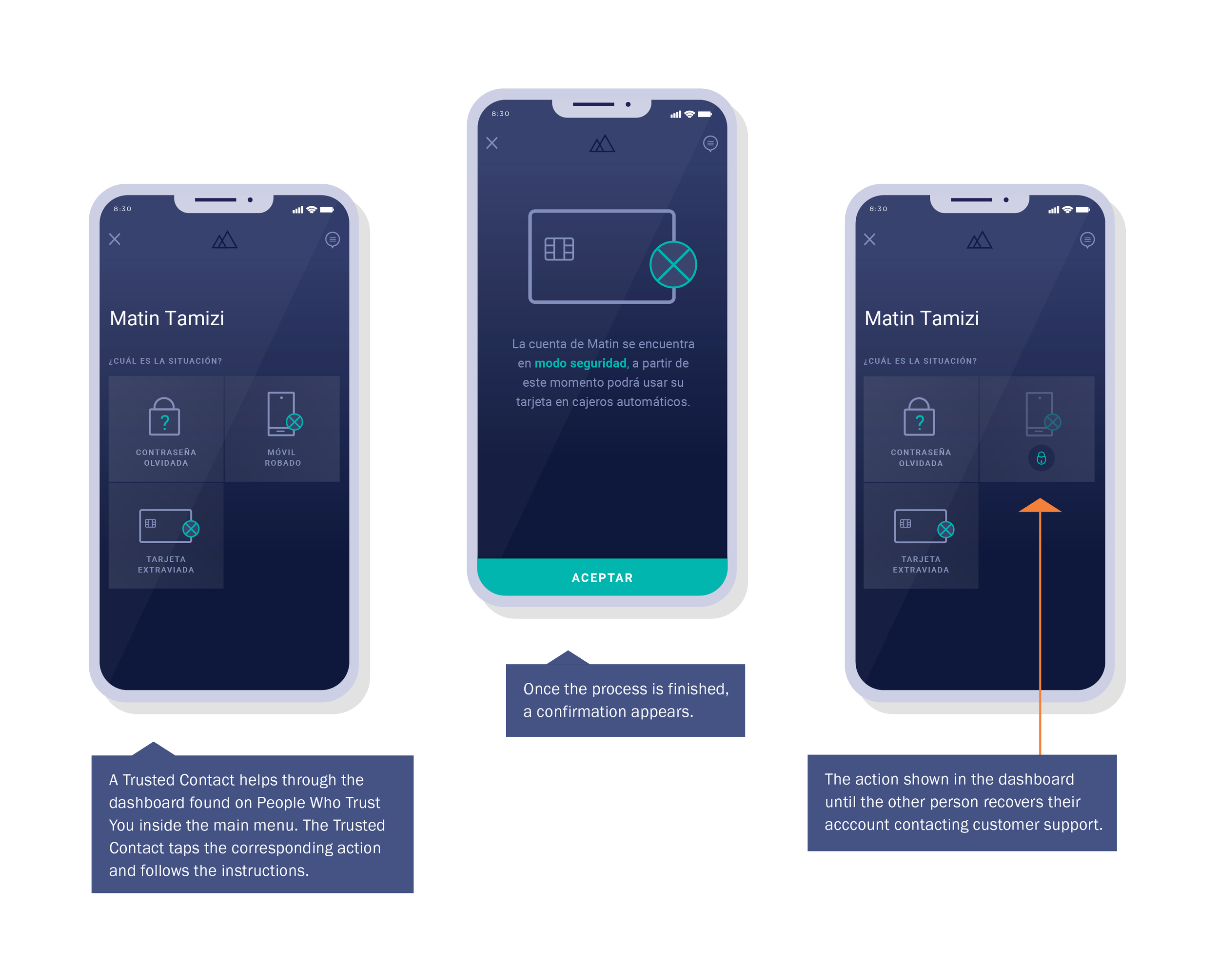 Fraud and identity theft are common in Mexico, and Cuenca needed to improve users' trust in case of a robbery or lost card. My task was to design user flow according to Mexico’s complex Bank Commission rules.